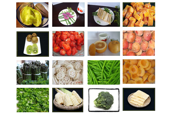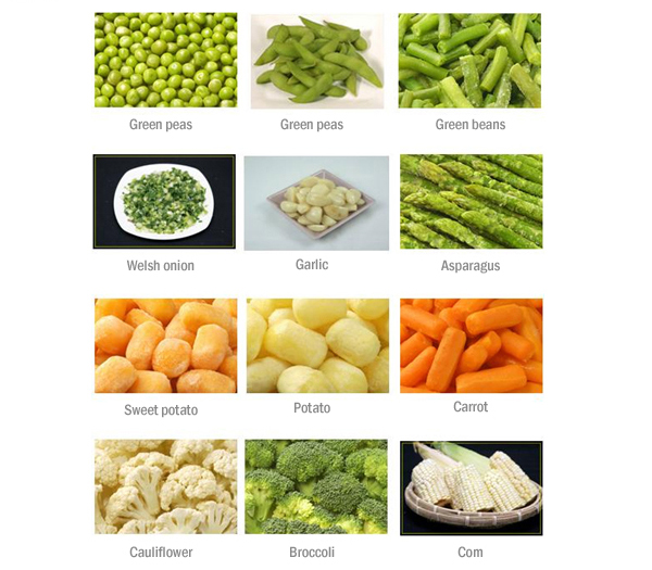 Garlic, Ginger, Squash, Asparagus, Lotus root, Green pea, Broccoli, Cauliflower, Corn,